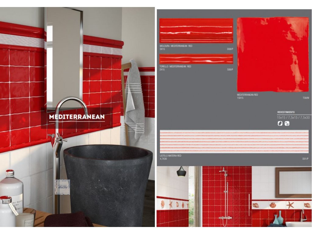 APE Mediterranean Red 7,5x30 (1. jakost) jsou dlaždice ze série APE Mediterranean od keramičky APE. Tento obklad je vhodný jako obklad do kuchyně, do koupelny a do interiéru. Střep je interiérový obklad - bílý střep. Dlaždice jsou červené s lesklým povrchem, styl dlaždic je málo proměnlivý jednobarevný a retro. Jedná se o keramické dlaždice ve formátu 75x300mm a tlouštce 8,5mm.