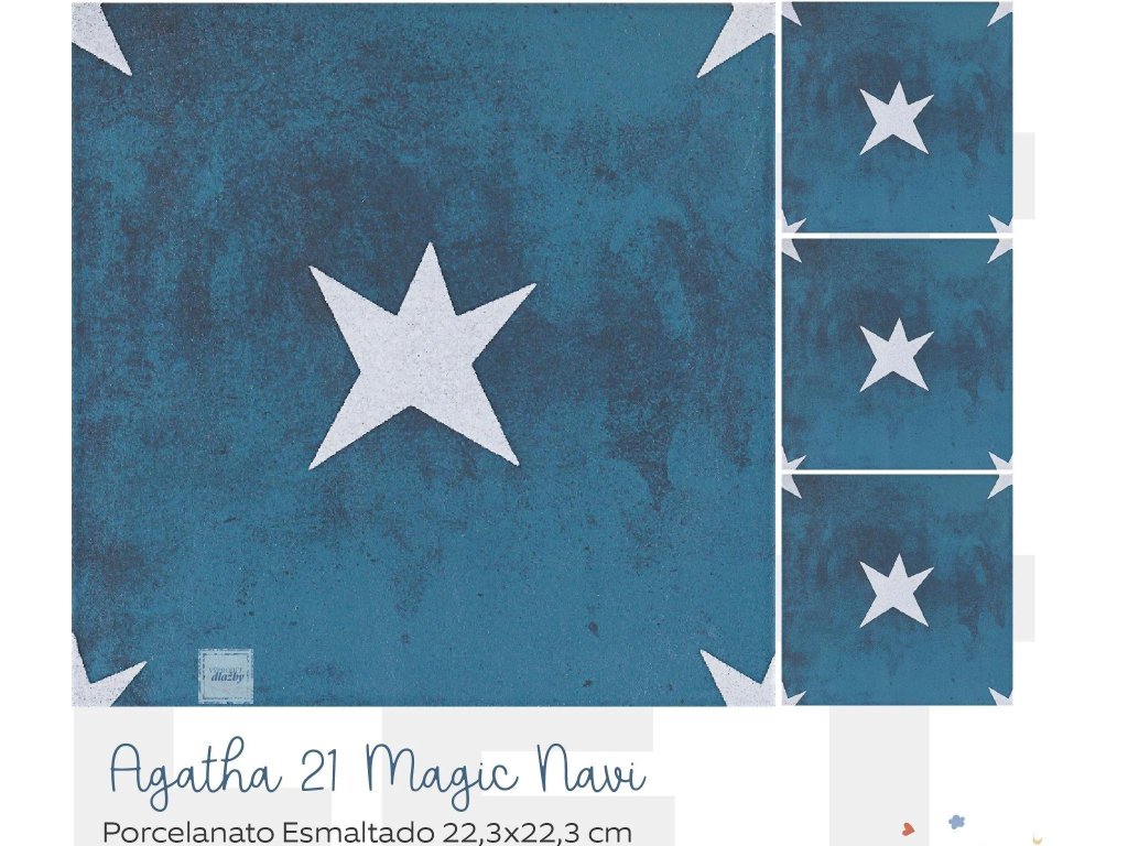 Bestile Pamesa Deco Agatha Magic 21 Navi 22,3x22,3 jsou dlaždice ze série Bestile Antic, Bestile Pamesa Agatha od keramičky Bestile Ceramicas. Tyto dlaždice jsou vhodné jako obklad a dlažba do obývacího pokoje a do interiéru. Střep je mrazuvzdorný slinutý. Dlaždice jsou modré a béžové s matným povrchem, styl dlaždic je mírně proměnlivý dekorovaný a retro. Jedná se o keramické dlaždice ve formátu 223x223mm a tlouštce 9mm.Doplňkové parametry