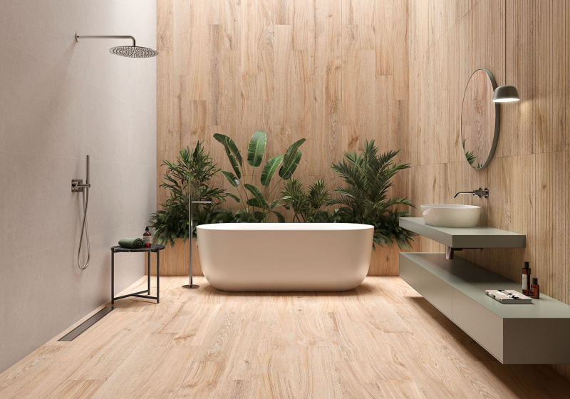 Velkou výhodou je také její odolnost vůči vodě. Zatímco dřevo může při dlouhodobém kontaktu s vlhkostí bobtnat a deformovat se, keramická dlažba zůstává stabilní. To z ní činí ideální volbu do koupelen, sprchových koutů nebo wellness prostor, kde je žádoucí kombinace přírodního vzhledu a maximální praktičnosti.