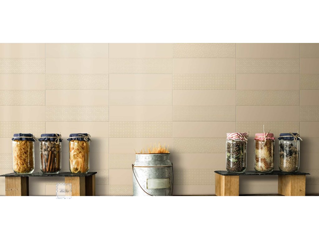 Deceram Clarte Decor Dovetail 7,5x30 Matt. - Mix jsou dlaždice ze série Deceram Clarte, Deceram 7,5x30 od keramičky Deceram. Tento obklad je vhodný jako dekor a obklad do kuchyně, do koupelny a do interiéru. Střep je interiérový obklad - bílý střep. Dlaždice jsou béžové s matným povrchem, styl dlaždic je dekorovaný, vzorovaný a retro. Jedná se o keramické dlaždice ve formátu 75x300mm a tlouštce 9mm.U jiných prodejců je možné najít produkt pod názvem: Meraki CLARTE DOVETAIL.