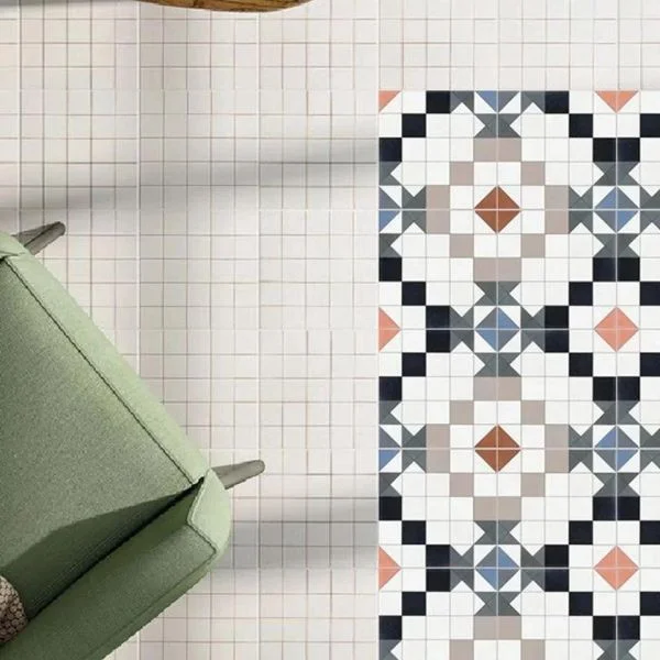 Deceram PAM Alba Naya Black 20x20 (tl. 13mm) - baleno po 0,64m2 jsou dlaždice ze série Deceram PAM Alba od keramičky Bestile Ceramicas. Tyto dlaždice jsou vhodné jako obklad a dlažba do obývacího pokoje a do interiéru. Střep je mrazuvzdorný slinutý. Dlaždice jsou více-barvé s matným povrchem, styl dlaždic je mírně proměnlivý dekorovaný a retro. Jedná se o keramické dlaždice ve formátu 200x200mm a tlouštce 13mm.