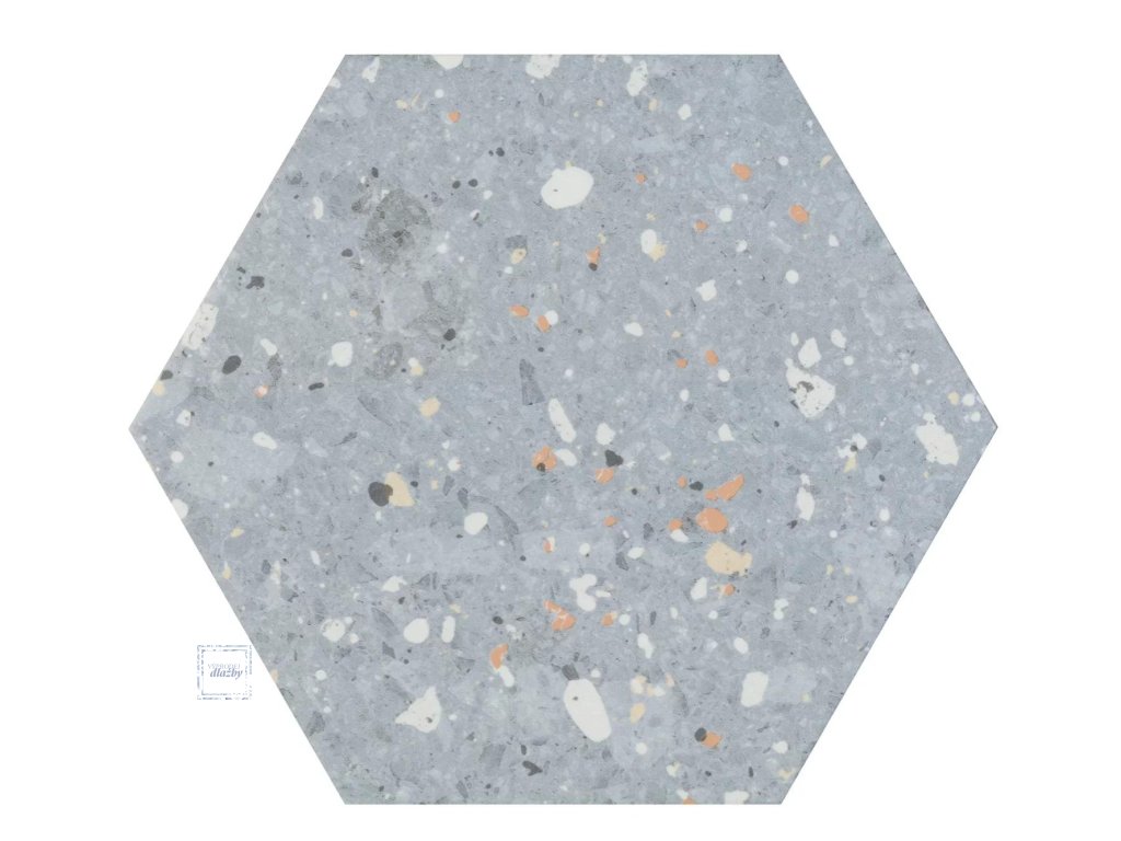 Deceram PAM Arousa Azul 25,8x29 Hex jsou dlaždice ze série Bestile Arousa od keramičky Bestile Ceramicas. Tyto dlaždice jsou vhodné jako obklad a dlažba do interiéru. Střep je mrazuvzdorný slinutý. Dlaždice jsou modré, béžové a šedé s matným povrchem, styl dlaždic je mírně proměnlivý terrazzo. Jedná se o keramické dlaždice ve formátu 258x290mm a tlouštce 8mm.Doplňkové parametry