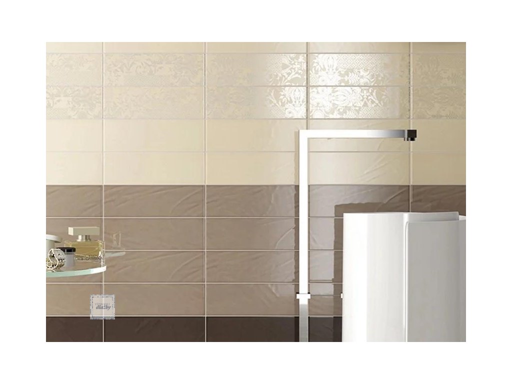 Del Conca Archistar NS22 Decor Moma Cream MIX 10,7x32,1 jsou dlaždice ze série Del Conca Archistar od keramičky Del Conca / Faetano. Tento obklad je vhodný jako obklad do kuchyně, do koupelny a do interiéru. Střep je interiérový obklad - bílý střep. Dlaždice jsou béžové s matným povrchem, styl dlaždic je málo proměnlivý květy, kytky, květinovými motivy, dekorovaný a vzorovaný. Jedná se o keramické dlaždice ve formátu 107x321mm a tlouštce 10mm.Doplňkové parametry
