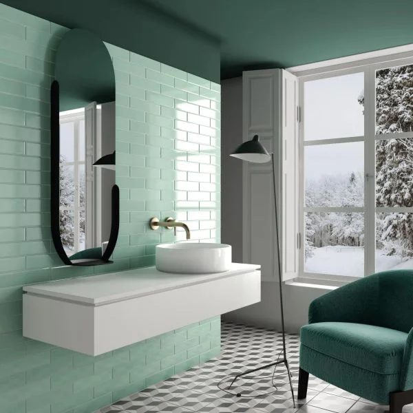Equipe Limit Menthe 6x24,6 jsou dlaždice ze série Equipe Limit od keramičky Equipe. Tento obklad je vhodný jako obklad do předsíně, do obývacího pokoje, do kuchyně, do koupelny, pro komerční prostory a do interiéru. Střep je interiérový obklad - bílý střep. Dlaždice jsou tyrkysové s lesklým povrchem, styl dlaždic je málo proměnlivý jednobarevný a retro. Jedná se o keramické dlaždice ve formátu 60x246mm a tlouštce 8mm.