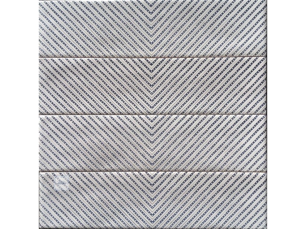 Equipe Splendours Vertex Blue 7,5x30 jsou dlaždice ze série Equipe Splendours od keramičky Equipe. Tento obklad je vhodný jako obklad do kuchyně a do koupelny. Střep je interiérový obklad - bílý střep. Dlaždice jsou modré, šedé a bílé s lesklým povrchem, styl dlaždic je mírně proměnlivý retro. Jedná se o keramické dlaždice ve formátu 75x300mm a tlouštce 8mm.Doplňkové parametry