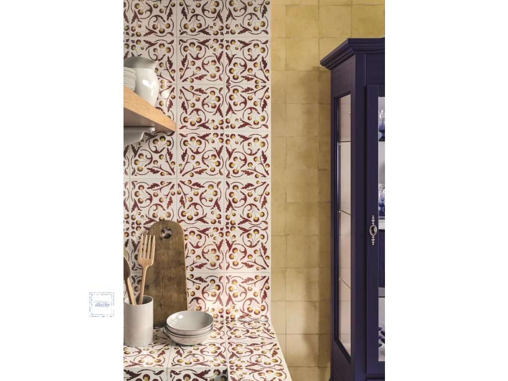 Marca Corona Storie D´Italia S5 Matt 22,5x22,5 jsou dlaždice ze série Marca Corona Storie D´Italia od keramičky Marca Corona. Tyto dlaždice jsou vhodné jako dekor, obklad a dlažba do kuchyně, do koupelny a do interiéru. Střep je mrazuvzdorný slinutý. Dlaždice jsou červené a béžové s matným povrchem, styl dlaždic je mírně proměnlivý luxusní, vzorovaný a retro. Jedná se o keramické dlaždice ve formátu 225x225mm a tlouštce 9mm.