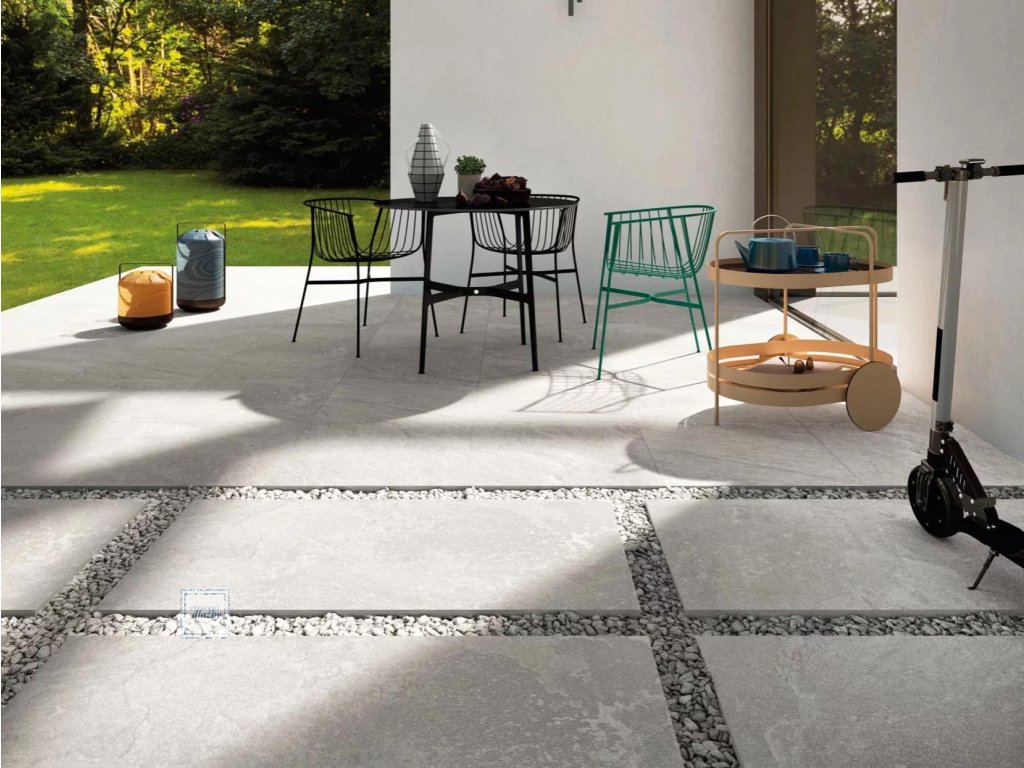Pastorelli Recode RE White 60x120 Nat. (tl.2cm) jsou dlaždice ze série Pastorelli Recode, Pastorelli 20mm od keramičky Pastorelli. Tyto dlaždice jsou vhodné jako 2cm dlažba a protiskluz do exteriéru, na terasu, na chodník a na balkón. Střep je mrazuvzdorný slinutý - probarvený střep. Dlaždice jsou šedé s hrubým povrchem, styl dlaždic je středně proměnlivý kamenný. Jedná se o keramické dlaždice ve formátu 600x1200mm a tlouštce 20mm.Doplňkové parametry